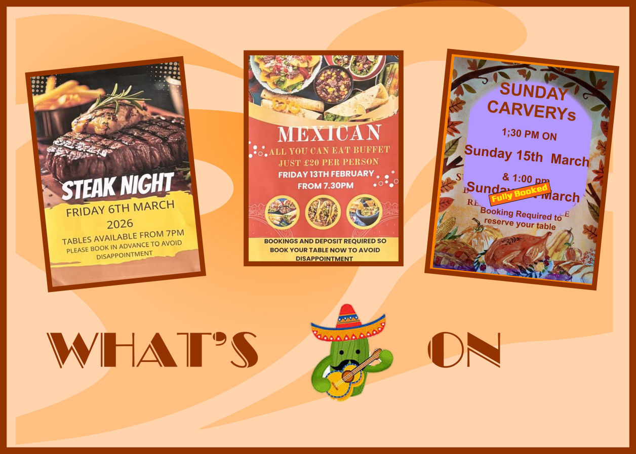 - All you can Eat Mexican Buffet on Friday 13th February. Great value at £20 pp.