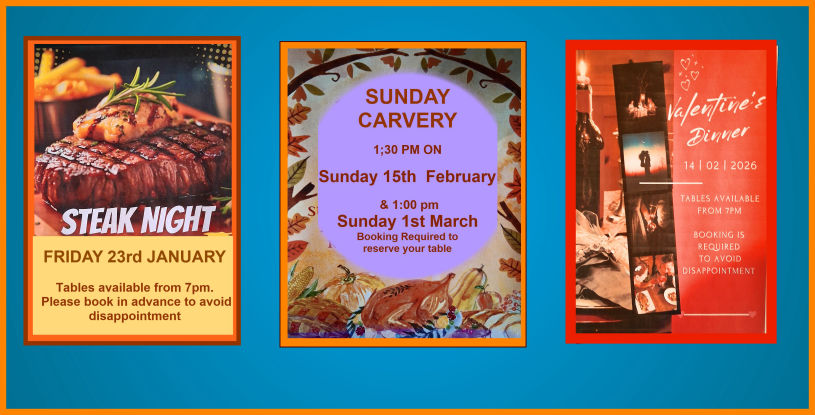 The club house is up and running again after a hectic Christmas. Forthcoming Special Events in the club house include:
