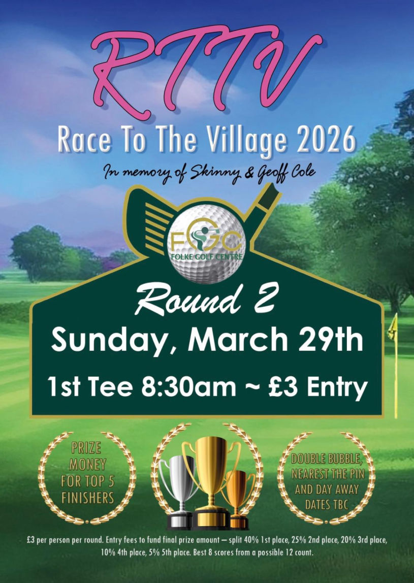 (PS: The RTTV Day Away will be on Sunday, May 31st at the Isle of Wedmore golf course. Entry fee is £48 and includes coffee and bacon roll on arrival (or full breakfast for extra £5.50). The Entry Form is on the Notice Board.
