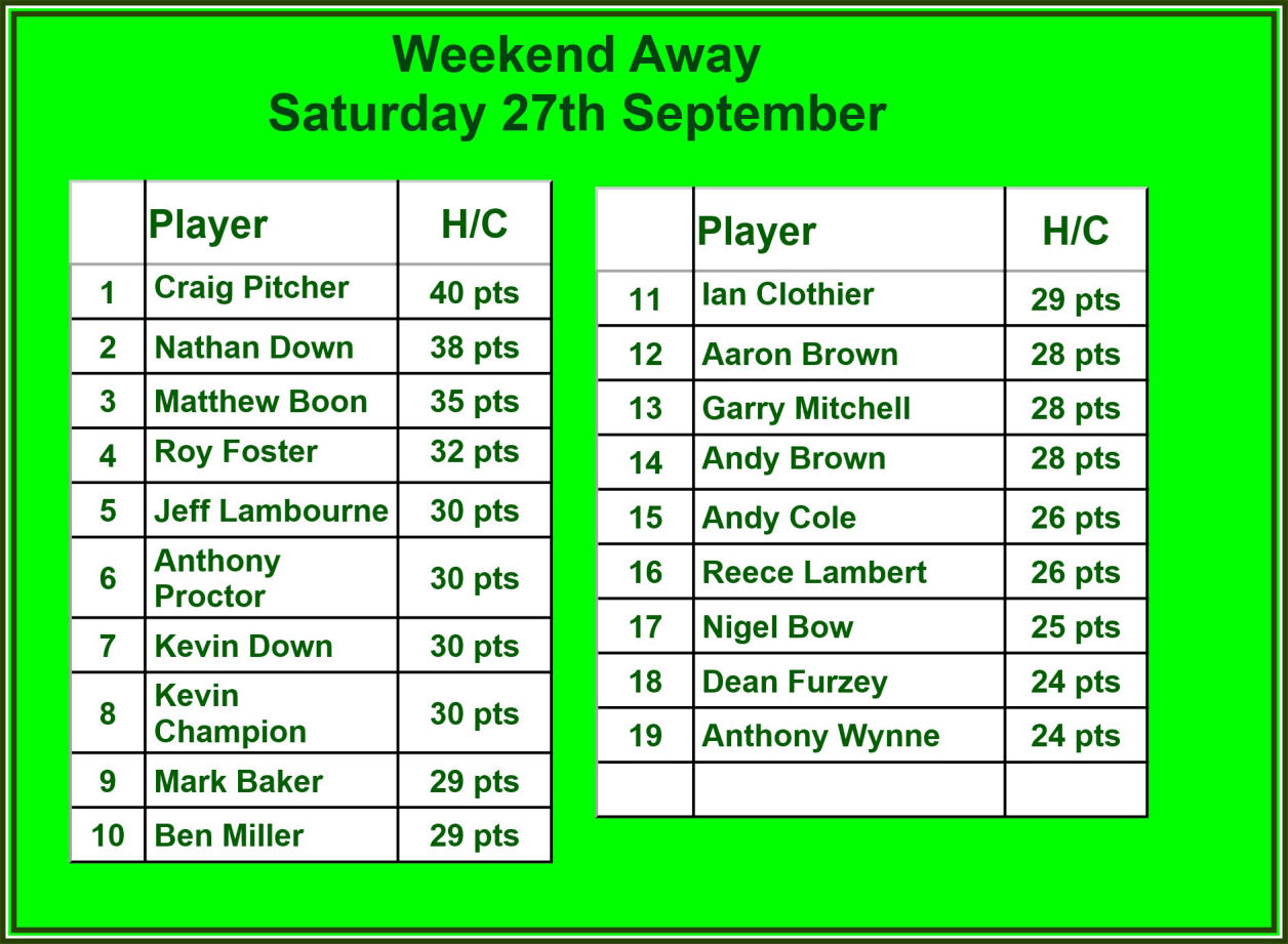 Saturday 18th October - Roll Up: Won by Matt Lambert with 40 points. See Result Table below.