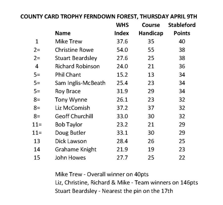 Thursday 9th April - County Card Trophy: See the details in the CCT Panel below.