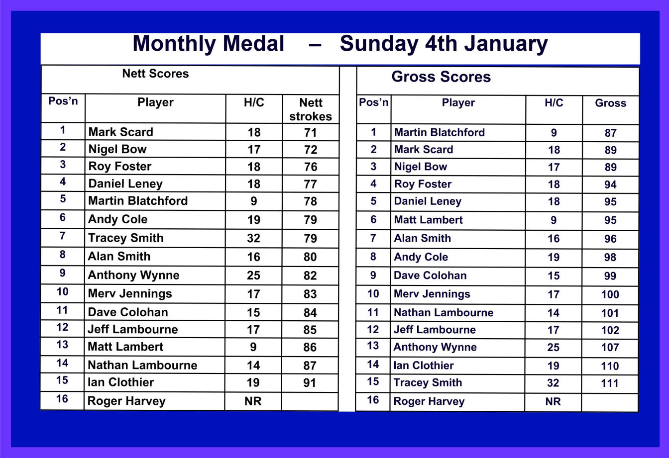 Latest competition winners and OOM Tables for the 2026 Monthly (Sunday) Medal are shown below. The Weekday medal and Tiger Trophy results and Orders of Merit are shown on the Senior page.
