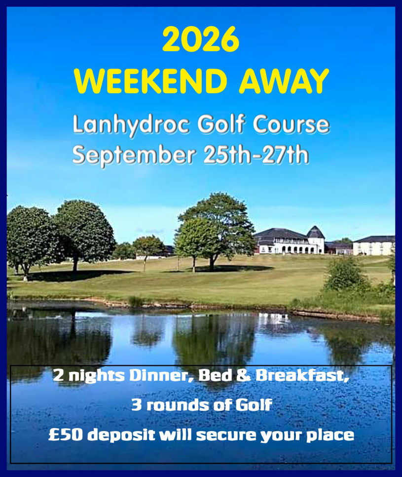 Following the very successful weekend away in September the committee agreed that the 2026 will once more take place at Lanhydroc on the weekend of 25th-27th September. This years weekend away took place at Lanhydroc Golf Course on 26th-28th September. The weekend will include 3 rounds of golf, and dinner, bed, and breakfast. The total cost is £294 and a £50 deposit is required to secure your place.
