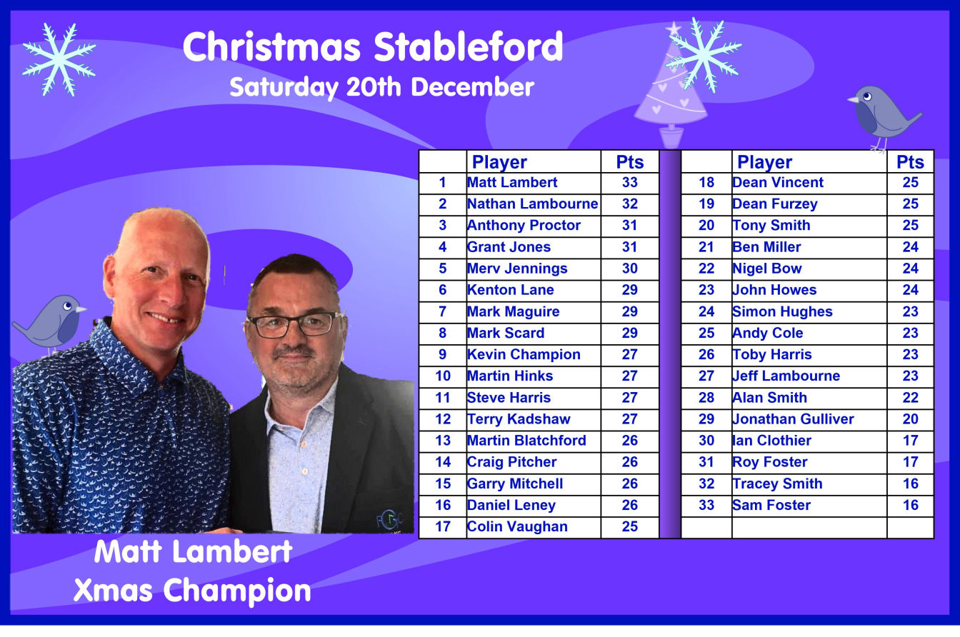Saturday 20th December - Club Xmas Stableford and Draw: See the header above and Panel below.