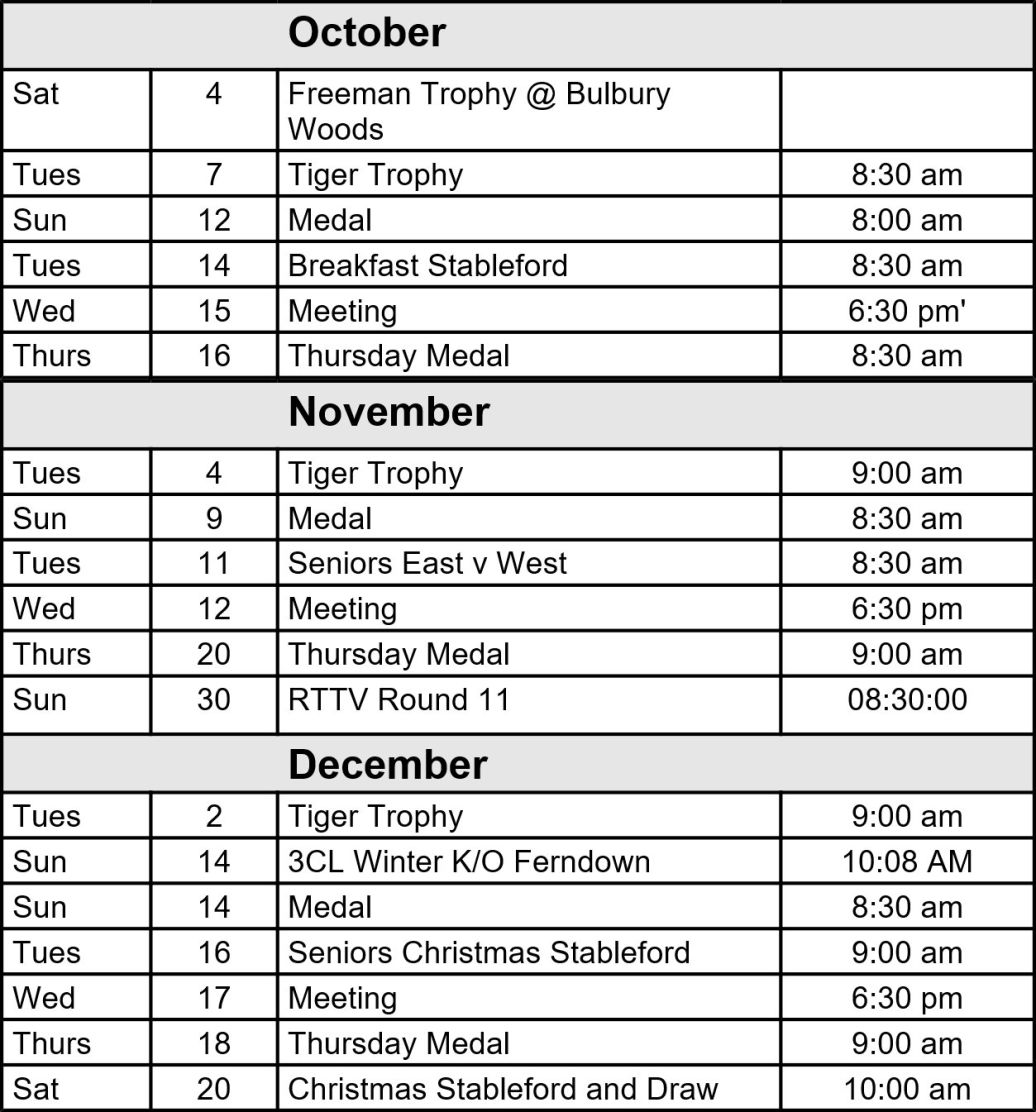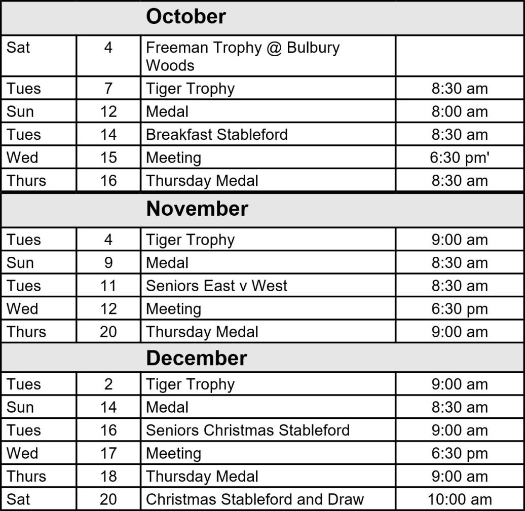 This page shows the overall activities in the club calendar for the next few months. More information will be added as it becomes available. For further details on each event see the Special Events and Senior Pages.